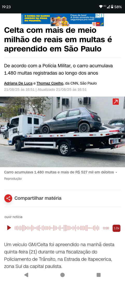 De acordo com a Polícia Militar, o carro acumulava 1.480 multas registradas ao longo dos anos, somando mais de R$ 527 mil em débitos.