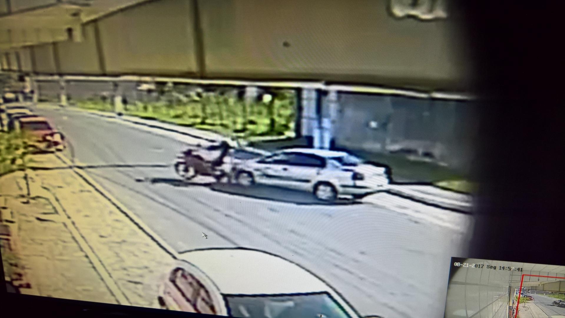 Volkswagen Polo Sedan prata, colidiu com uma moto em Dias d'Ávila e deixou o condutor na pista sem prestar socorro, sendo que ele foi o errado e não o condutor da moto.