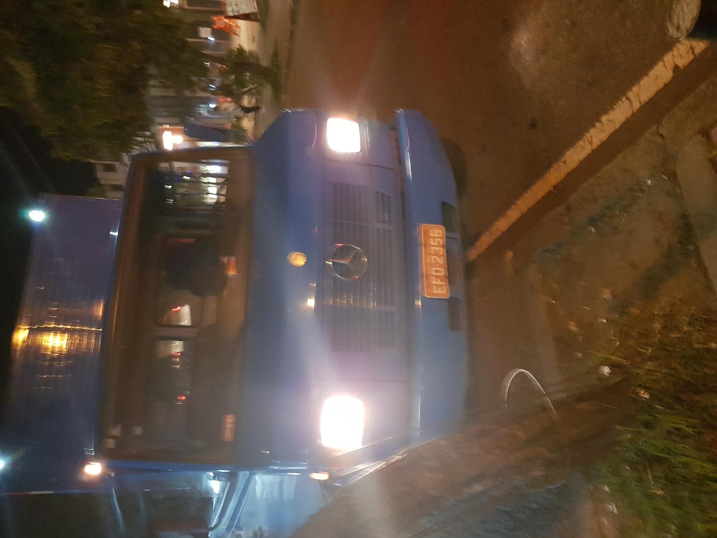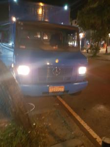 Motorista visilmente alterado e bêbado. Agressivo. Estava descarregando encomendas à noite na RUA Olegário Maciel, no bazar Coppola, e queria parar na vaga que eu estava parada. Disse que aguardava minha filha de 10 anos sair da loja, do mesmo bazar Coppola, porque estava esperando-a. Ou seja, o entregador de produtos agredindo a cliente da propria loja. Ficou buzinando atrás do meu carro, me xingando, me ameaçando . Disse que ia chamar a Polícia mas seus dois ajudantes pediram para não chamar a polícia, que iria prejudica-los. Só não fiz isto porque estava sozinja com minha filha, menor de idade e já era a noite. Não queria causar mais danos à ela . Porém é o típico mal educado, valentão com mulheres e violento que merece ser constrangido por uma autoridade policial. O tempo todo que fiquei parada com o carro ele me xingou pela janela do caminhão e gritou. Desceu do caminhão visualmente bêbado e veio até meu carro dizendo para ir embora. Quando fotografei o carro veio até mim gritando que iria me fotografar também me ameaçando novamente. Pelo histórico de multas desse caminhão, merece ser banido do emprego pois é um perigo à sociedade.