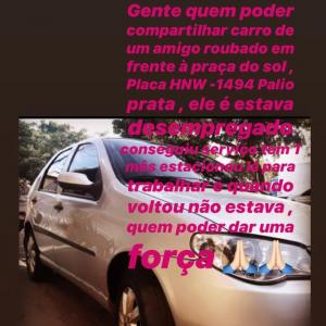 Foi roubado meu carro ajude-me a encontrar por favor estava trabalhando e deixei estacionado quando acabei meu horário de trabalho sai da empresa tinha sumido em frente a praça do sol perto do shopping Contagem.