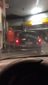 Motorista totalmente imprudente, eu estava para entrar em um posto de gasolina o mesmo acelerou para passar na minha frente, o mesmo viu que eu estava com minha família, minha filha é pequena, o motorista estava sozinho, como se estivesse apostando racha, ao sair do posto saiu queimando pneu.