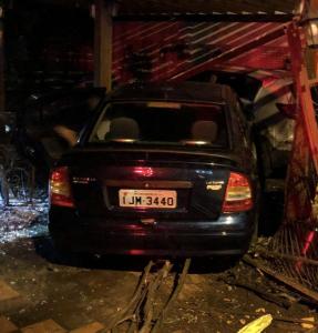 Condutor totalmente embriagado e em alta velocidade sobe calçada, destrói grade de proteção, invade restaurante em Cachoeira do Sul na madrugada de 28/04/2019.