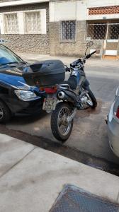 Motociclista imprudente parando em vaga de carro atrapalhando a saída de veículos.da vaga
