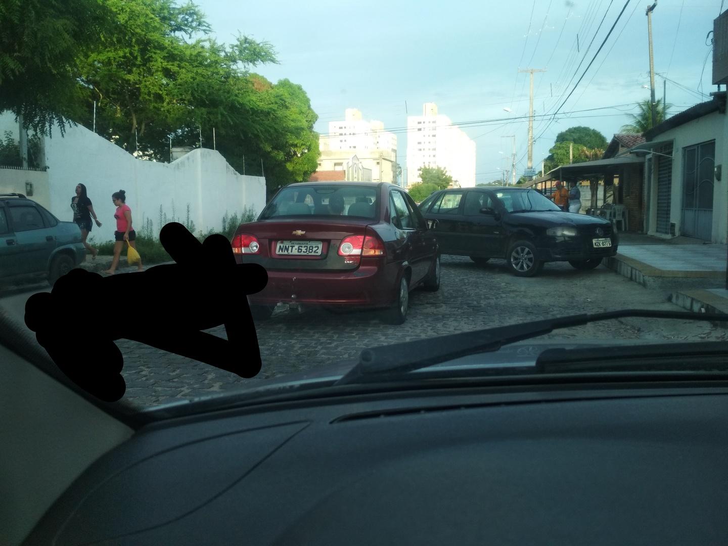Belo exemplo de como NÃO estacionar. Vaga é o que não falta nessa rua, mas ele "só pode" parar na frente de onde vai descer.