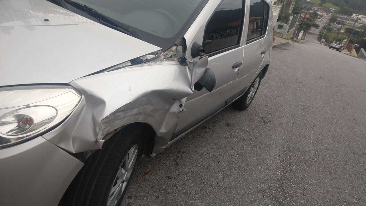 O dono desse caminhão, que o dirigia no momento do acidente, bateu na lateral do meu carro, um Sandero/Renaut 2009, placas MHJ5829, em São José/SC, e fugiu do local do acidente. Seu nome é Cláudio Tomoisi Hamoda e ele veio a SC entregar madeira no bairro Forquilhinha. Polícia Rodoviária está alerta.