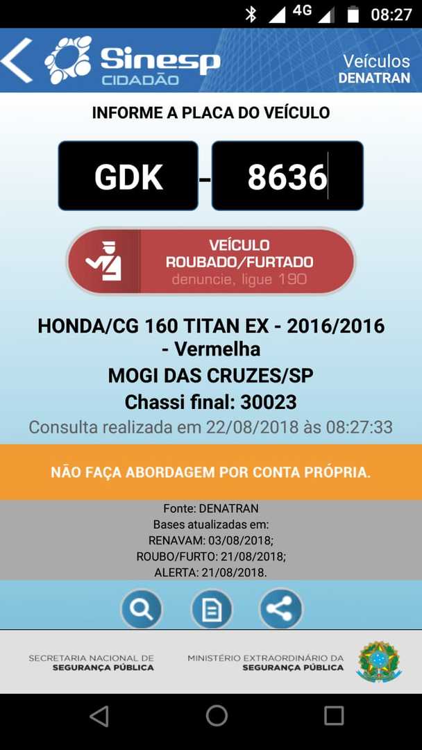 Carro foi furtado em 14/08/2018