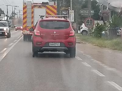 Condutor totalmente infeliz, pois o mesmo passou por uma poça de agua enorme propositalmente molhando uma pessoa na calçada, um trabalhador nao qual eu conheço, estava no carro de tras, vi tudo, foto tirada assim que a pessoa infeliz fez a infraçao.