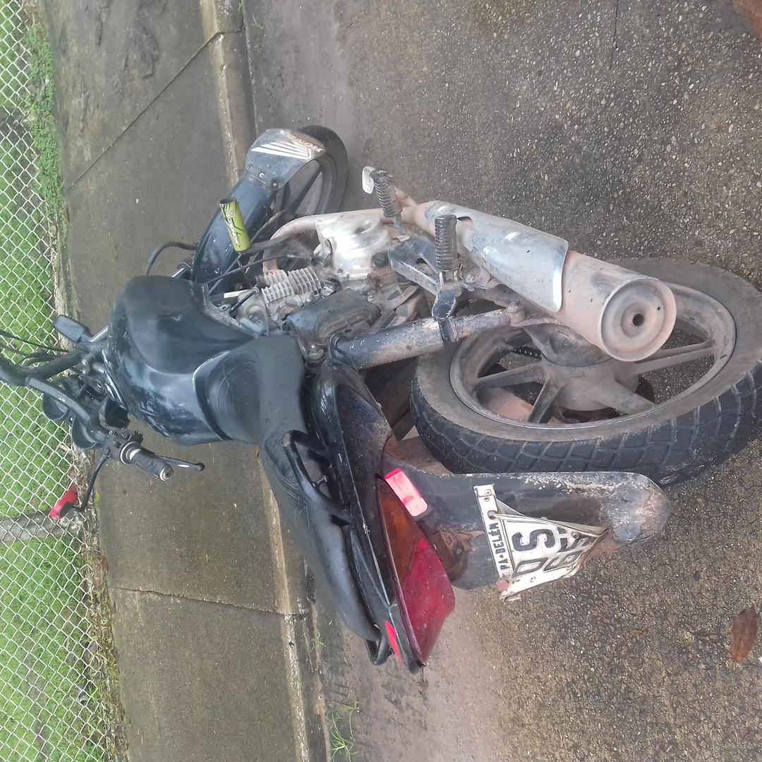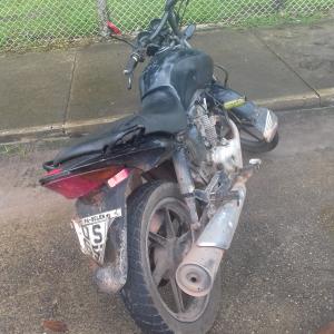Bateu meu carro por trás Em um sinal de trânsito fechado, completamente alcoolizado e se evadiu deixando a moto no local. Chamei a polícia para recolher o veículo que está com licenciamento atrasado a 2 anos e é alienado ao banco.