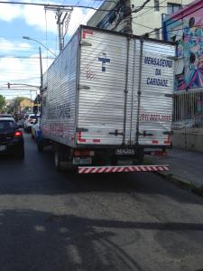 Ocorrência na Rua Santana, sentido centro-bairro na tarde de terça-feira 09/01/2018; motorista buzinou e forçou ultrapassagem obrigando ciclista a dar lugar para que o caminhão seguisse. Foi feita a fotografia na sinaleira da Santana com a Av. Ipiranga no horário das 17:30
