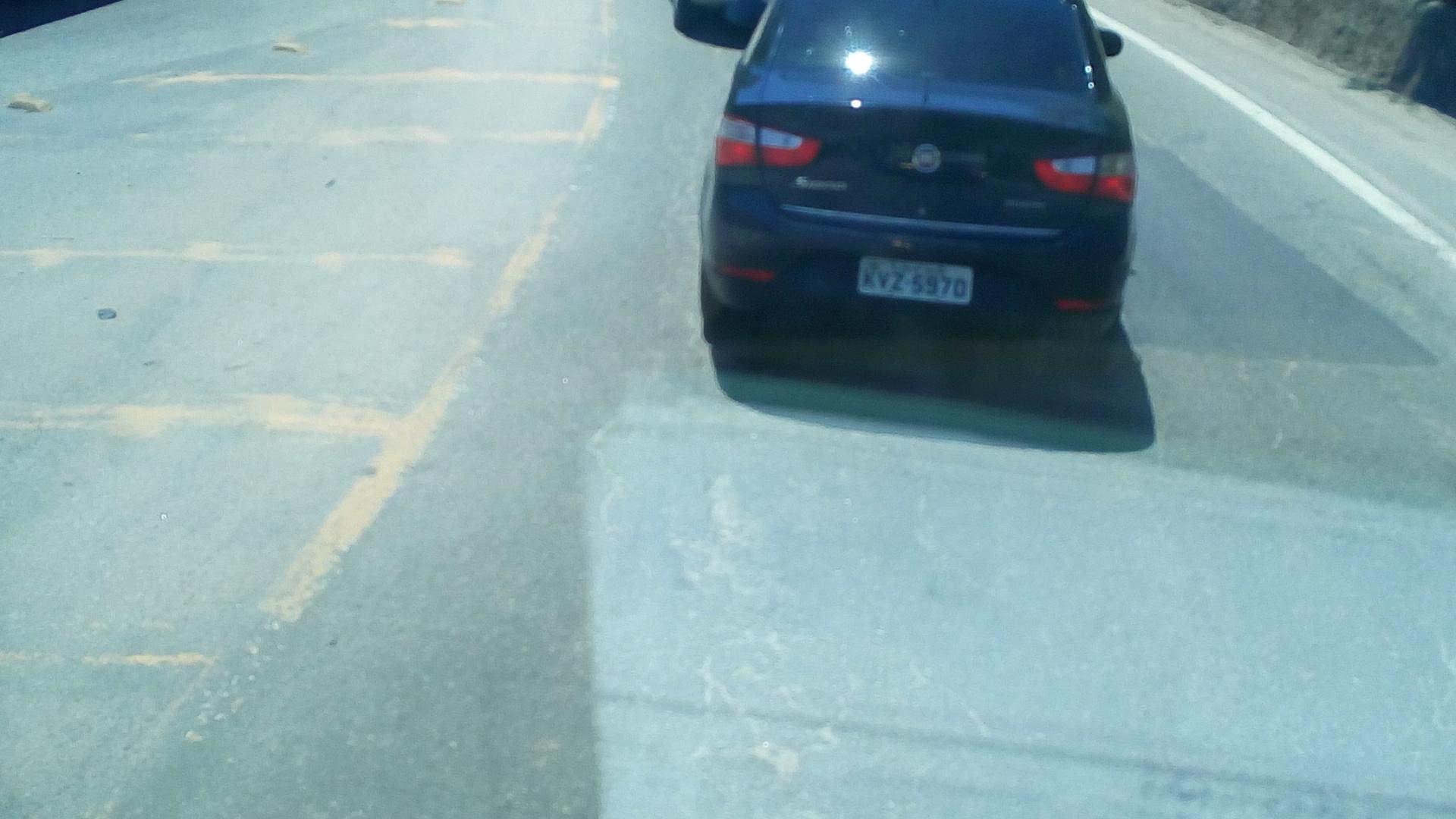 O motorista do Siena preto placa KVZ-5970, dirige imprudentemente, sem prestar atenção ao volante e as placas de sinalização, quase acabou causando, um acidente de sérias consequências ao se enfiar entre um caminhão e outro veículo na rodovia Washington Luiz, em 06/10/2017, tomem cuidado com ele...