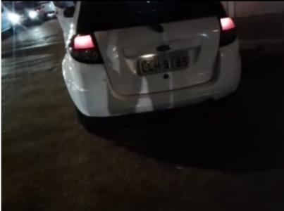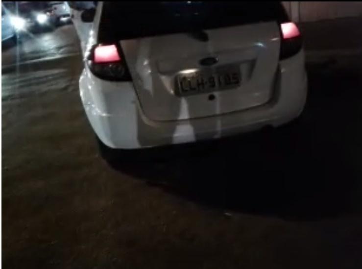 Veículo Ford Branco estacionou em frente a porta de garagem de condomínio em Campo Grande, atrapalhando a entrada e saída de moradores deste residencial (Vivenda das Oliveiras)